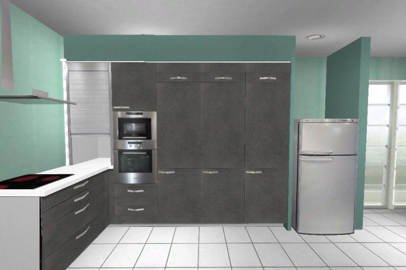 Diese Nische halt entsprechend breiter und nur so tief, dass die Türen noch vor stehen. Eventuell den seitlichen Überstand an der Insel etwas kürzen, damit man noch gut durch kommt, aber dann passt es so schon mal besser;-)