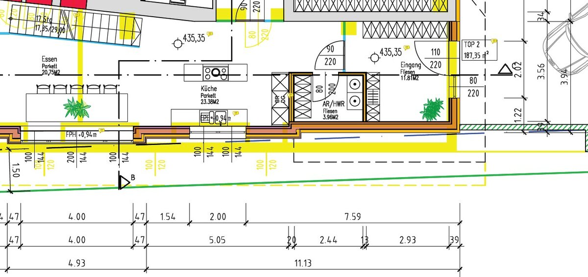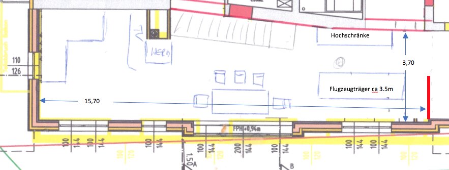 Dadurch müssen wir allerdings leider mit der Außenwand zurückrücken und haben daher leider einen sehr langen und schmalen Grundriss. Nach zwei Jahren sind wir jetzt aber so weit, dass mir mit dem Plan trotz Nachteilen weitermachen.
