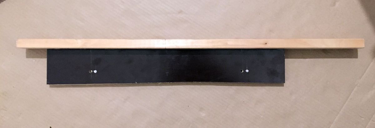 Bei den Haengeschraenken habe ich mir zur Distanzierung mit einer einfachen Markierung an der Schablone beholfen, damit das aeusserste (im folgenden Fall obere) Loch 4,8cm von allen Frontkanten entfernt ist: