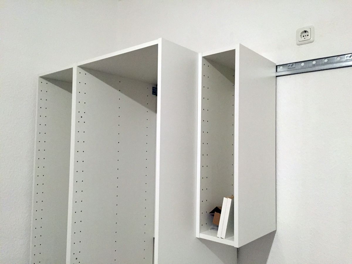 Die Schiene würde Dir immerhin das wandseitige Ausrichten der Schränke ersparen. Andererseits ist das Ausrichten der Schiene auf einer nicht lotrechten Wand auch nicht sonderlich lustig…