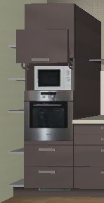 Mikrowelle hinter Klappe .. es reicht ein einfaches kleines Standgerät. Aber, da paßt ja genausogut eine Einbaumikrowelle.