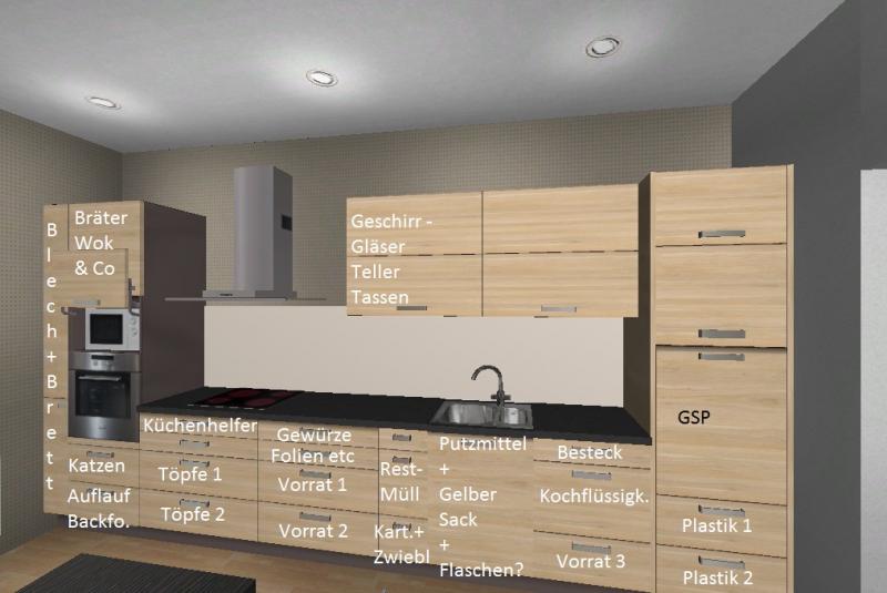 @ Kerstin, mit dem Schrank auf der anderen Seite hast du recht. Sollte alle Möglichkeiten nutzen. Evlt. kann man ja einen 60er in Richtung Tisch planen. So, das man bequem vom Tisch aus zugreifen kann.