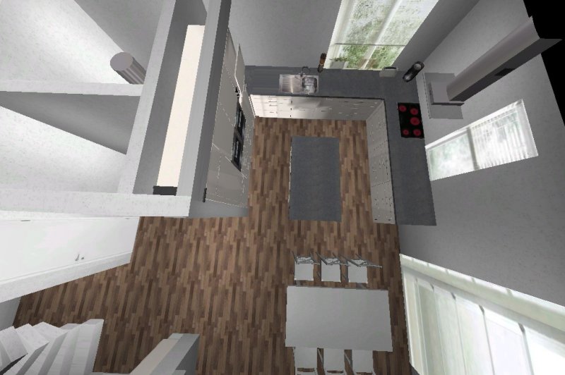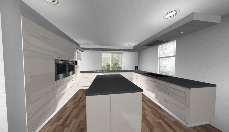 Ich habe eigentlich gedacht, wenn wir uns jetzt noch festlegen könnten, wo das Kochfeld und somit auch die Haube ist, könnten wir eine Aussparung in die Decke machen.