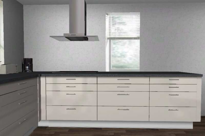 Ich habe einmal geschoben und die hochgesetzte SpüMa bei den Hochschränken geplant.