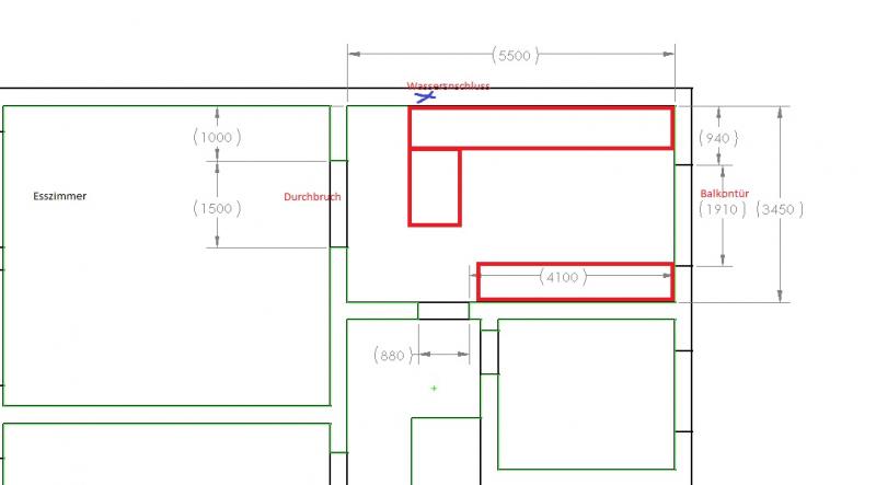 ich habe die Zeichnung noch mal etwas gezoomt. Die Angaben sind in mm ;-) Ansosnten ja 1750 mm. Worst case wäre eine 2 flutige Balkontür. Wir sind uns da noch nicht sicher aber die 1750mm sind fix. Ich würde gerne die bischerige Planung online stellen aber die Hernn Küchenplaner haben die Zeichnungen nicht wirklich raus gerückt.