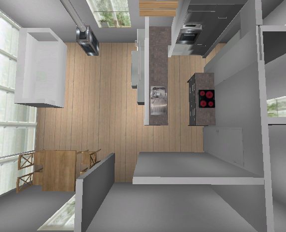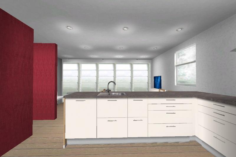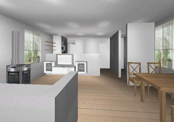 Der Raum wird eine Wohnküche, Couch konnte ich leider nicht einzeichnen.