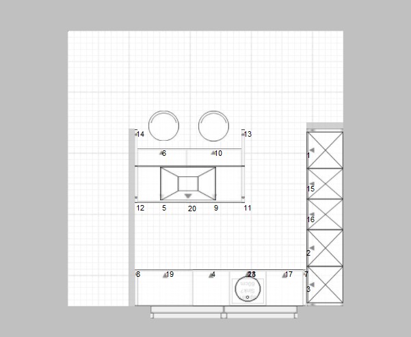 Der Seitenschrankbereich sieht noch nicht so Optimal aus. Was aber auch daran liegt das ich nicht die richtigen Schränke im Planer finde. Meine Vorstellung wäre, Plan rechts oben beginnend: