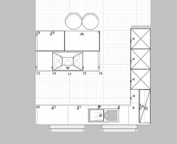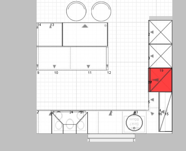 deine Entwürfe sind nicht schlecht, aber wie willst du an die Schränke unter der Arbeitsplatte kommen? In deinem Plan MacLitze 1 Nr. 8 und 14.