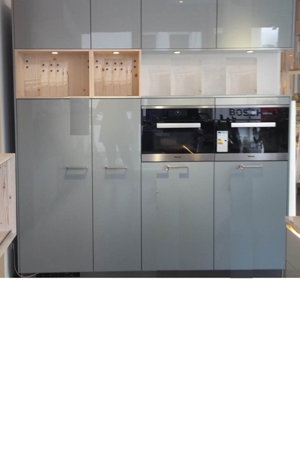 Würde ich eine Hochschrankwand mit Aussparung planen würde ich entweder diese Aussparung über die ganze Breite vornehmen oder über die beiden mittigen Schränke. Die Heißgeräte wären dann immer mittig. Die Aussparung könnte ich mir dann gut komplett in einer anderen Farbe (z.B. APL- oder Nischrückwandfarbe) als die Frontfarbe vorstellen.