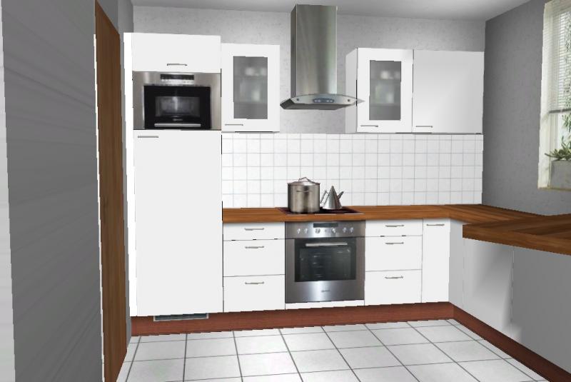 unser Neubau EFH ist gerade in der Entstehung und soll mit einer neuen Küche ausgestattet werden. Die Küche ist zum Esszimmer hin offen. Die offene Küche hat die Maße 2,95m (Breite) x 2,81m (Gesamt-Wandlänge auf der Türseite). Wir stellen uns eine L-Form vor mit aufgesetzter schwenkbarer Theke am Ende des Schenkels auf der Fensterseite.