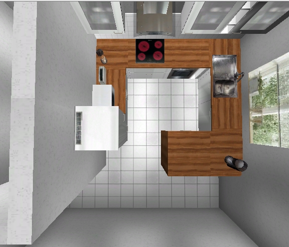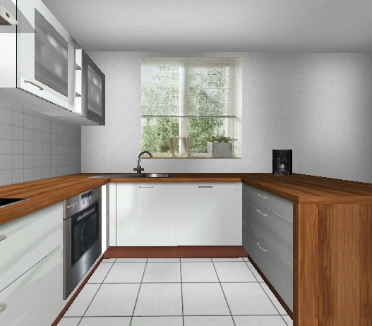 Die Insel würde ich mit Schränken vom Essen her bestücken (Eckschrank weglassen) und die Theke weglassen - statt dessen lieber nur einen APL-Ueberstand. Du machst Dir den Nutzen von der Insel mit dem Aufsatzteil kaputt - das ist Schade und unnötig.