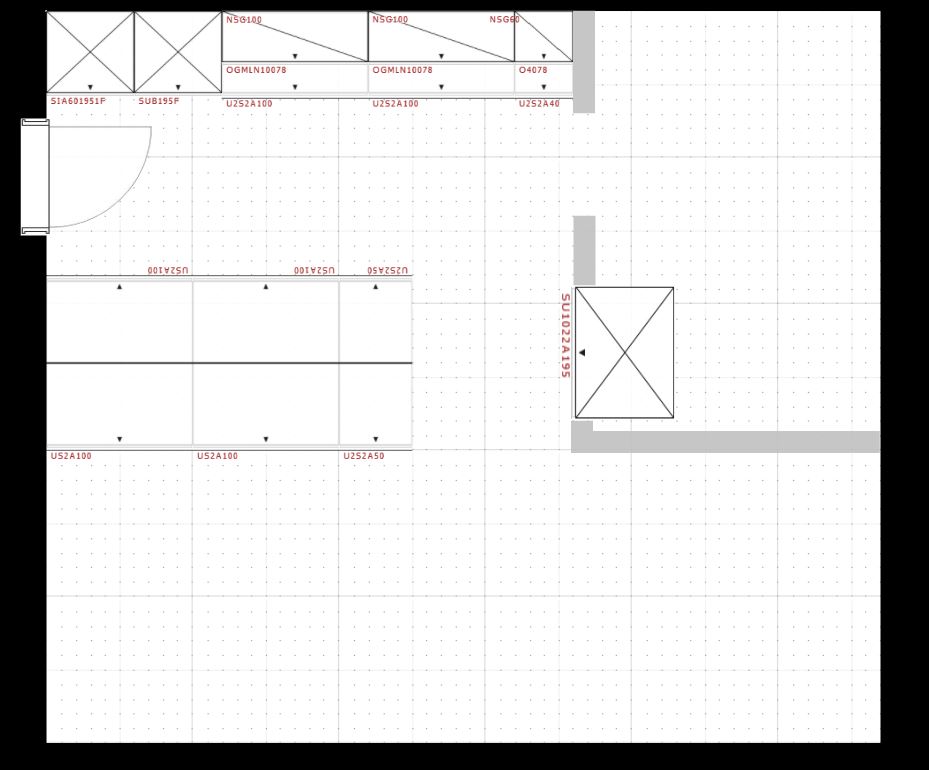 Anbei mal ein Schnellentwurf im Alno Küchenplaner und der Grundriss. Rechts der Raum ist die Speisekammer, der Kasten soll den Kühlschrank darstellen, wird voraussichtlich ein SAMSUNG RF-G23UERS.