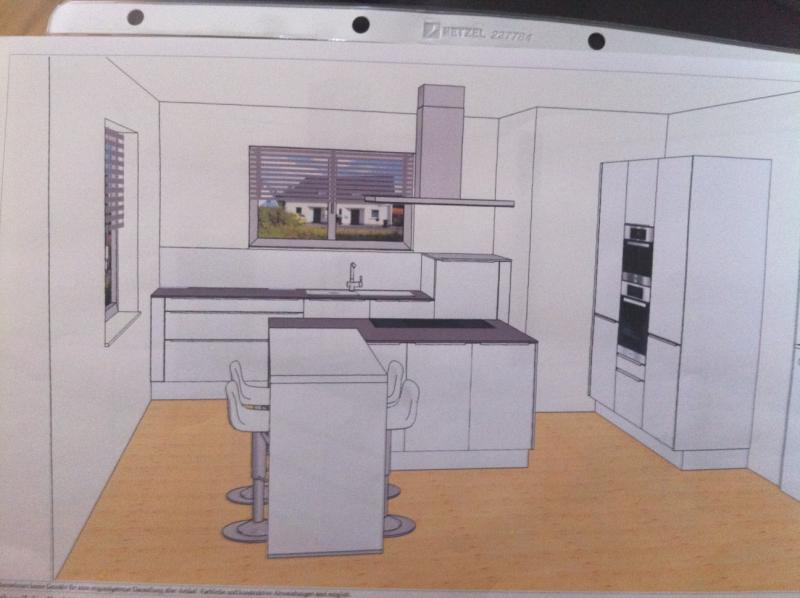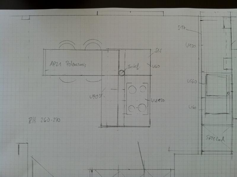 wir waren heute ein paar Stunden im Küchenstudio und haben eine erste Zeichnung mitbekommen. Hoffe es ist darauf zu erkennen, welche Ideen eingeflossen sind und wie die Küche evtl. aussehen könnte.