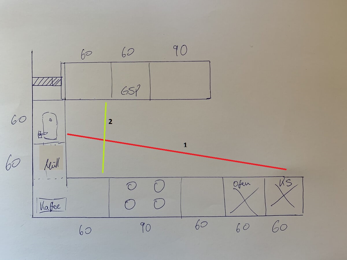 abzustellen. Sowas verstehe ich nicht. Bei mir ist es genau umgekehrt. Mein Leben spielt sich die meiste Zeite an der nackten Insel ab, nur wenn ich für zu gekochtes vorarbeiten muss, dann stehe in der Ecke planunten links. Bei uns ist der BO viel in Betrieb. Auch stehe ich keine halbe Stunde stramm am Kochfeld, dafür gibt es timer, ist ja Induktion und nicht kochen in slow motion wie auf CeranWas steht auf der Arbeitsplatte oder soll dort stehen?: Kaffeevollautomat, Messerblock, Küchenmaschine