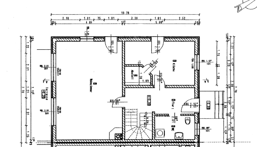 der Tisch ist 80x125 + 4 Stühle, eventuell ist die Wand nicht genau eingezeichnet. Ein Grundriss des gesamten Erdgeschosses habe ich mit oben eingefügt. Für die grösseren Events haben wir im WZ noch einen großen Esstisch, im normalen Alltag eher weniger genutzt.