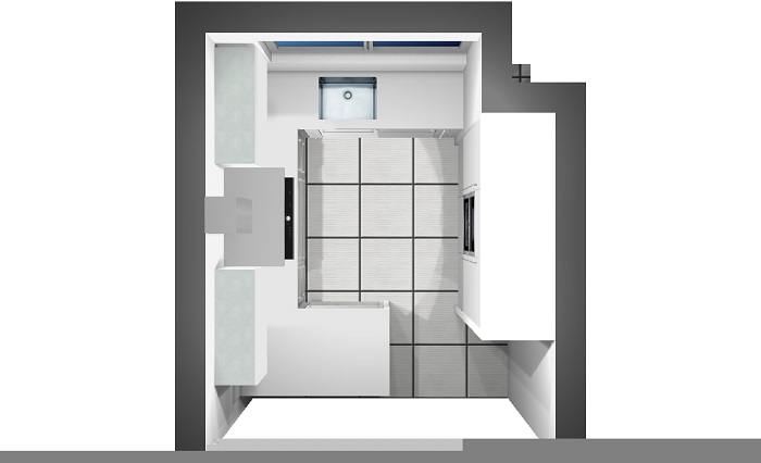 Die 3,50m lange Seite ist nun nur 3,30 und die Hochschraenke jetzt hoch.