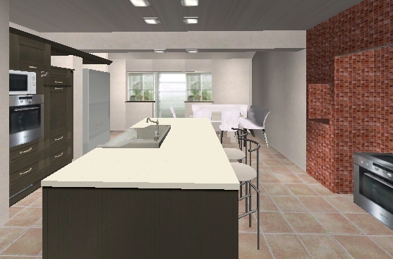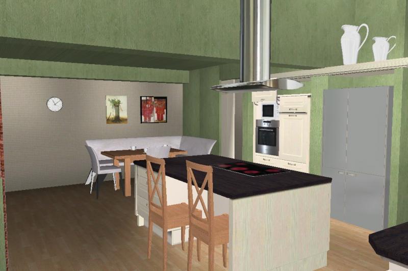 Ich hab jetzt mal meine letzte Idee hochgeladen...so was in der Art waere schon mal schoen...kurze wege, der Kuechenbereich zusammen, die Sitzbank mit dem Oven im Blick und an der Ofenwand noch ein schoner alleinstehender Schrank fuer meine Sammeltassen..nennt sich hier Dresser, unten Schrank und oben Regale.