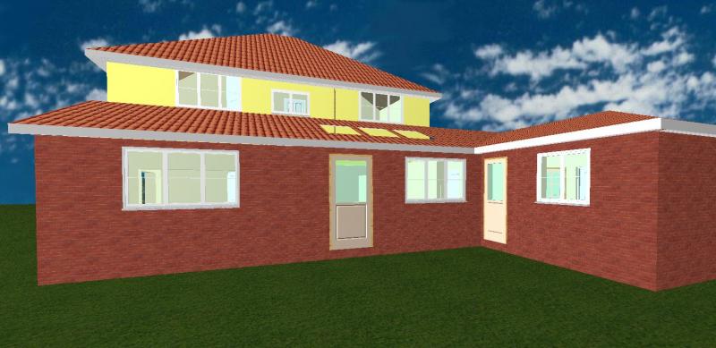 Also zurueck zur Kueche..hier ist das Dach mit Massangaben und dann haben wir uns noch Gedanken ueber die Fenster und Tueren gemacht und das ist dabei rausgekommen...das sind die 3 moeglichkeiten..es gaebe noch eine dritte und das waere das alles so bleibt wie es ist..doppelte Tuer und doppeltes Fenster wo sie sind.