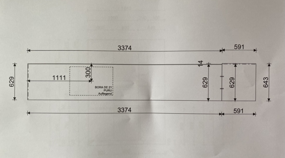 Wegen dem Bora ist die Arbeitsplatte schon etwas tiefer als sonst. Ich meine, es sind knapp 63cm.