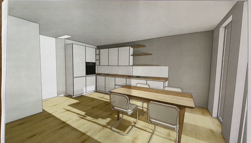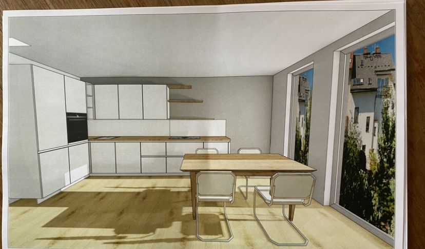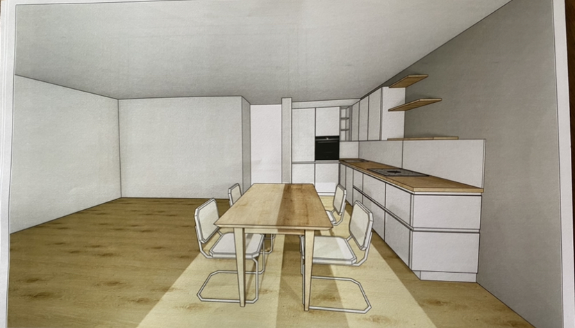 Da mein alter Mac so langsam den Geist aufgibt, habe ich nur skizzenhafte Planungen vom Ikea-Planer oder die einer Freundin, die mit Sketchup arbeitet.