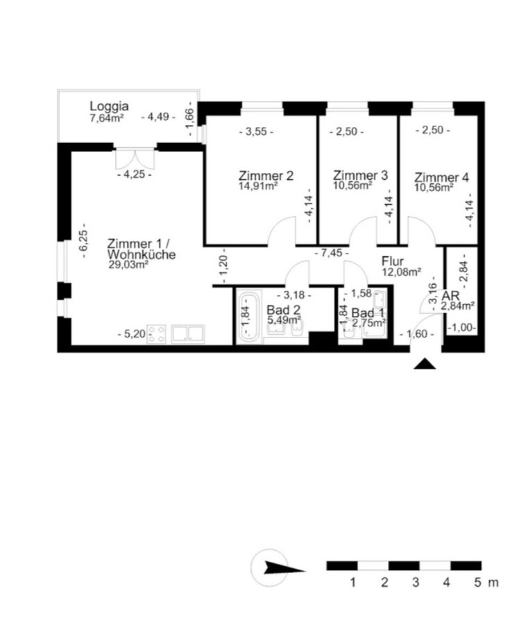 Die Nische planunten rechts ist, wenn ich von der Tiefe des Badezimmers ausgehe, 184cm.