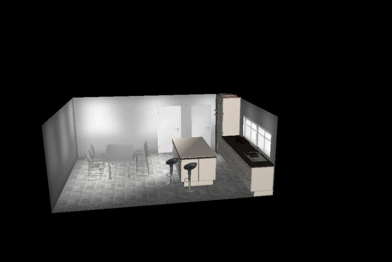 Ich habe auch bisschen geschoben. Muss aber sagen, dass die Mel's Idee mit dem Stand-Alone in der Kombination mit nur einem Hochschrank und der langen Zeile gefällt mir gar nicht. Ich meine, der Raum bietet nicht sooo viele Möglichkeiten, wo man einen Kühli unterbringen kann, und sie hat Vanessa hervorragend dargestellt. Jedoch, ich habe versucht, auf den Stand-Alone zu verzichten, um ein stimmigeres Bild der Küche zu bekommen. Auf Kochfend UND Spüle in der langen Zeile habe ich genauso verzichtet, und das aus folgenden Überlegungen:
