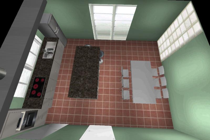 2) der Raum gibt eine Insel her, die MMn in der Größe 2,2 x 1,2 m optimal wäre (der Durchgangsbreiten wegen). So eine riesen Insel als reine Arbeitsinsel wäre mir zu Schade. Diese Arbeitsfläche schreit wörtlich danach, häufig benutzt zu werden, und deswegen finde ich die Spüle dort gar nicht verkehrt, nämlich viel besser untergebracht, als in der Zeile. Besonders wenn die Familie / der Besuch am Tisch sitzt und Mel sich dann nicht ständig hin und her drehen muss, um etwas abzuwaschen oder die Hände abzuspülen (was ja in der Küche ständig passiert). Ein paar Umdrehungen zum Schnitzel-in-der-Pfanne-wenden genügen :-)