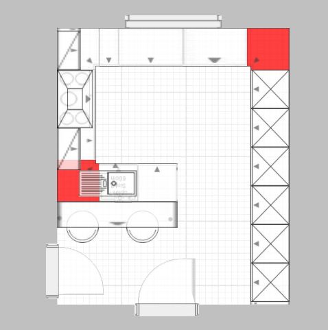 - Kochfeld und Spüle sind jeweils in Ecksituationen gedrängt und können nicht gemeinsam genutzt werden.