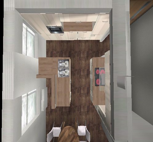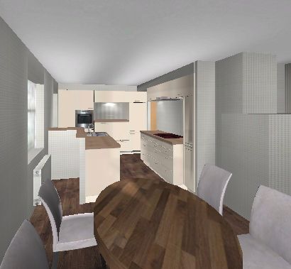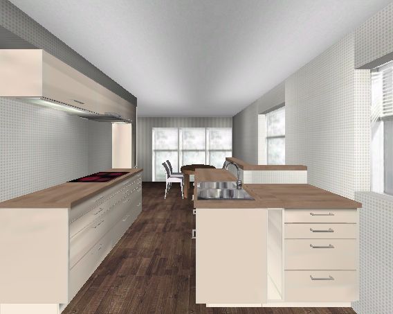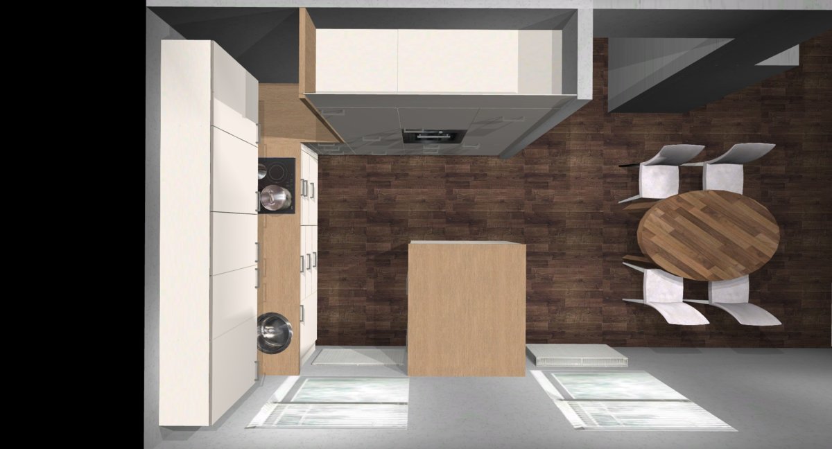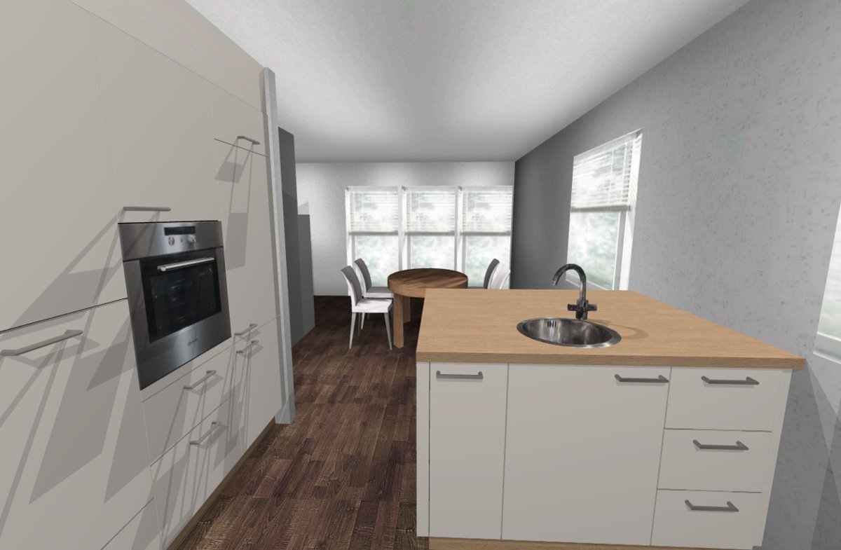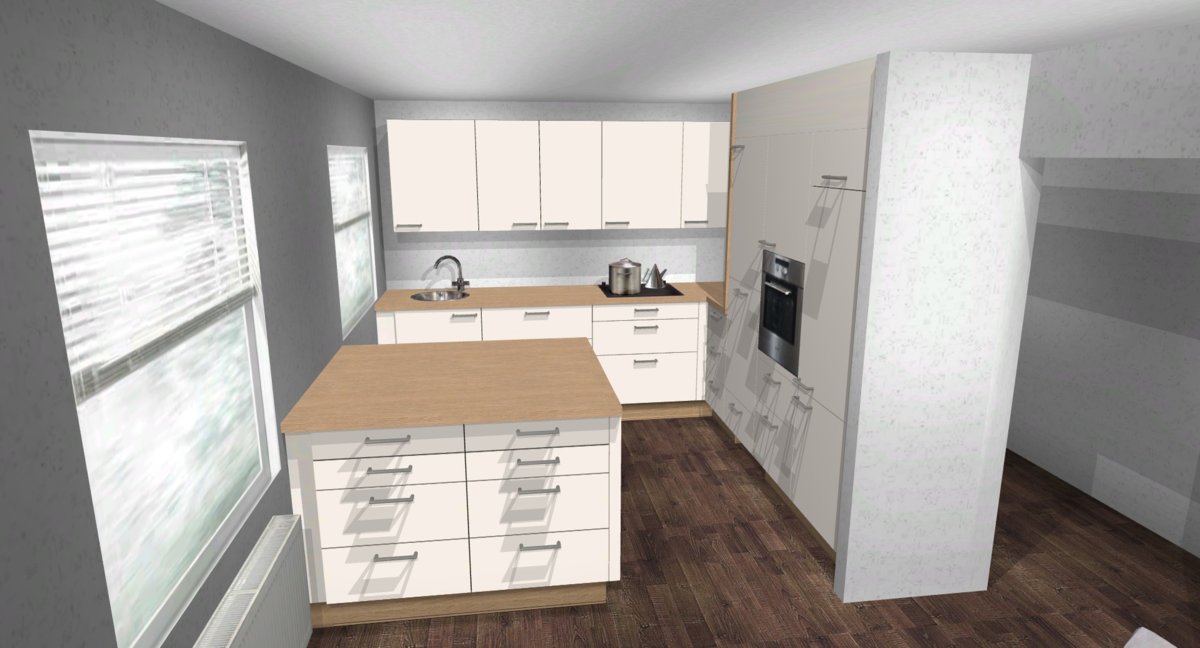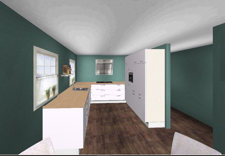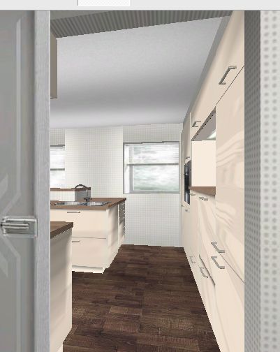 Angehängt schnell mal ein Bild einer Variante vom ersten Entwurf, nur mit Spülinsel.