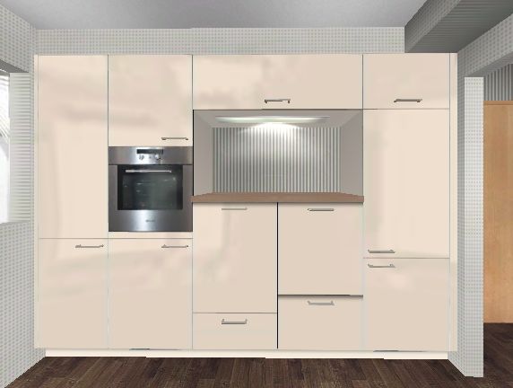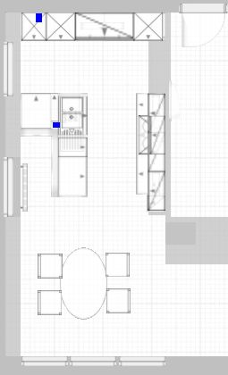 Bei den ersten Geversuchen mit dem Alno -Planer hier hab ich die Anschlüsse als fix genommen, und mir zugegeben noch nicht viel Gedanken über die Art der Schränke und die Stauraumplanung gemacht.