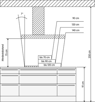 ZB. 60 cm Kochfeld + 90 cm Dunstabzug = seitliche Überdeckung je 15 cm.