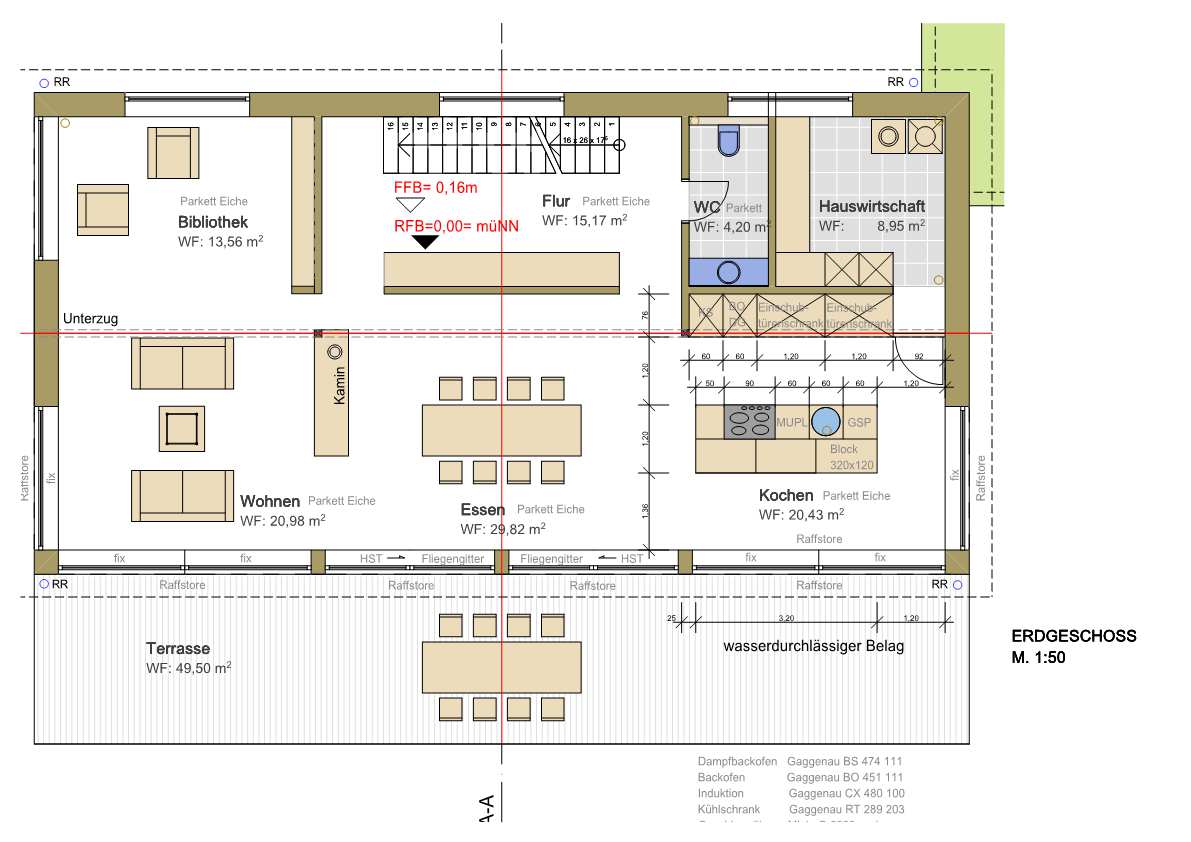Ich habe noch vergessen zu fragen, ob Ihr die Küche im Haus so positionieren würdet? oder würdet Ihr sie um 90 Grad drehen an die östliche Aussenwand?
