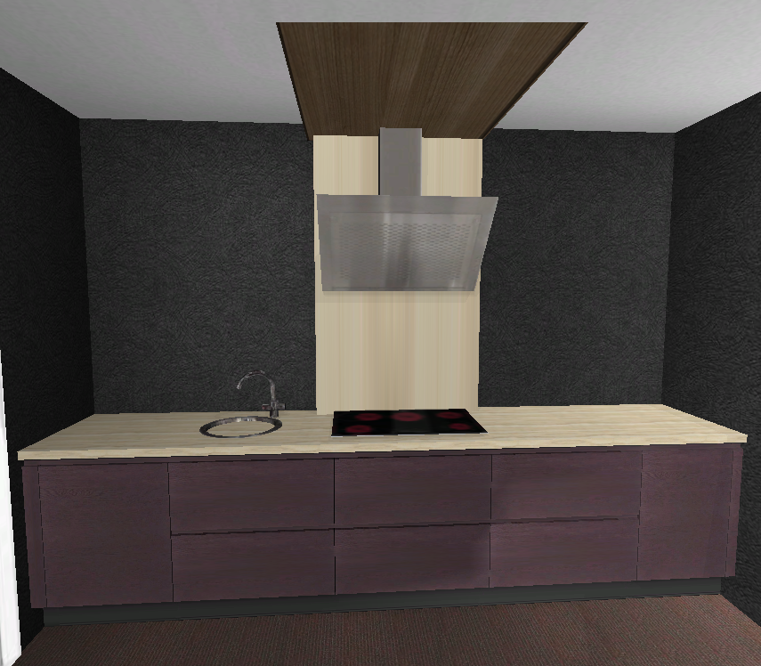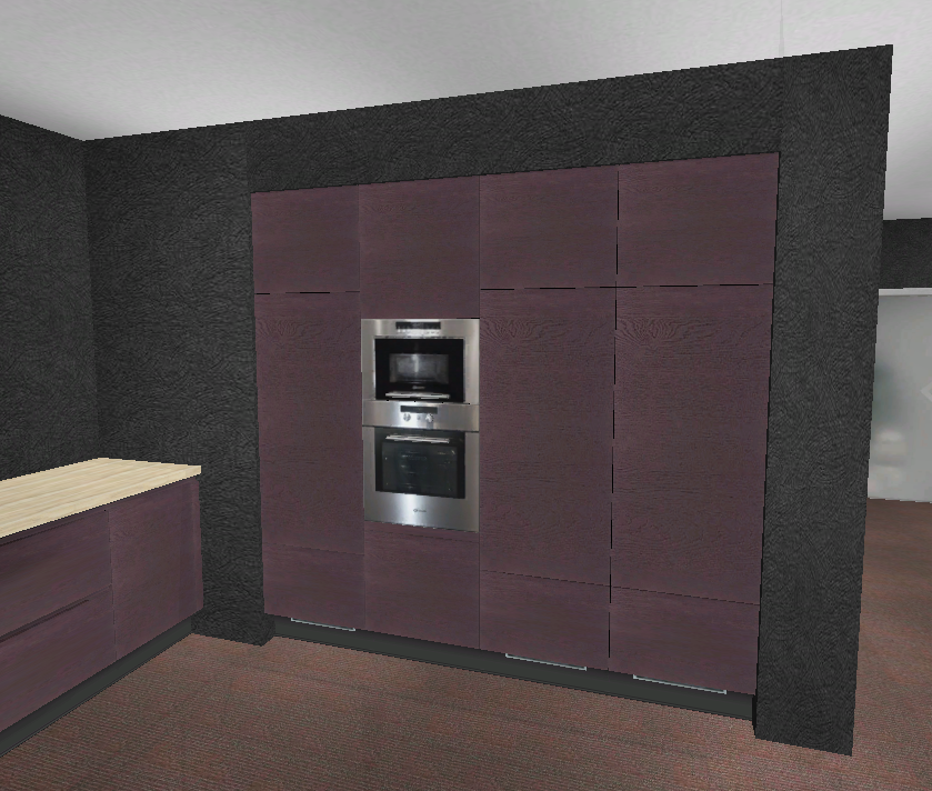 - Carboneiche von Alno für Front und Korpus (der Ansloplaner macht es lila, ist aber tatsächlich echtes schwarz)