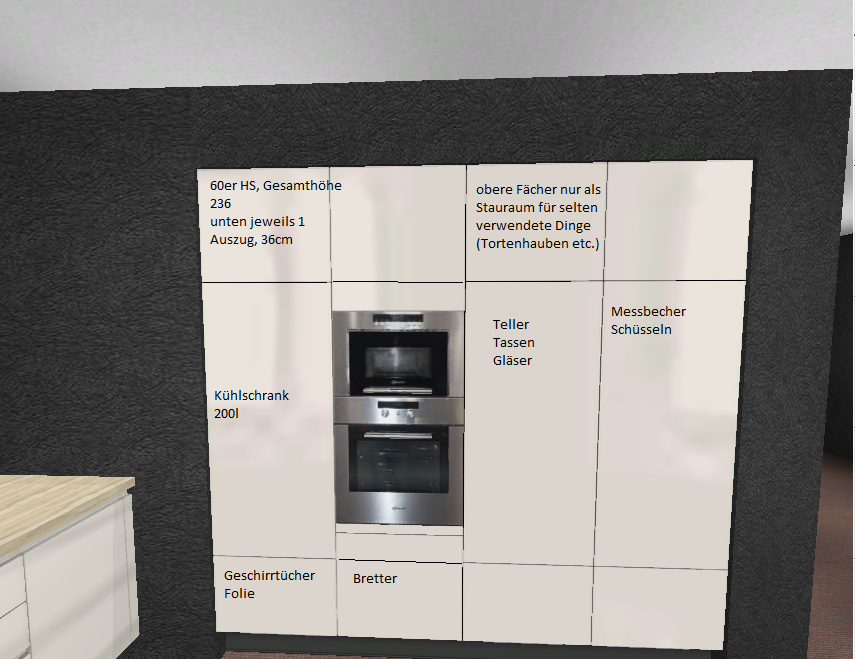 Möglicherweise ist deshalb unser Planung etwas ungewöhnlich. Vermutlich sind aber trotzdem Fehler drin. Ich weiß nur nicht wie ich die Stauraumplanung machen soll, wenn der Plan eurer Meinung nach schon falsch ist. Meine Kopf-Stauraumplanung passt ja ;-)