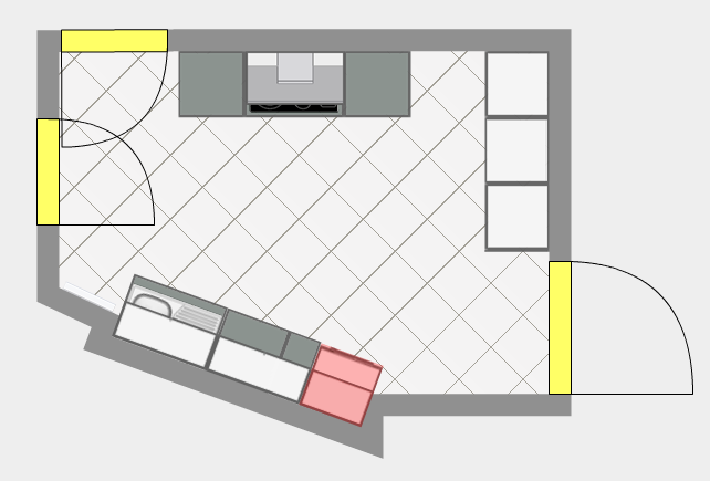 Kleine Anmerkung noch zu meinem Entwurf. Ich bin davon ausgegangen, dass die Steckdose neben der Flurtuer (8cm breit) noch ein wenig versetzt werden kann, so dass wir an der Stirnseite auf >= 180cm (statt 178) kommen.