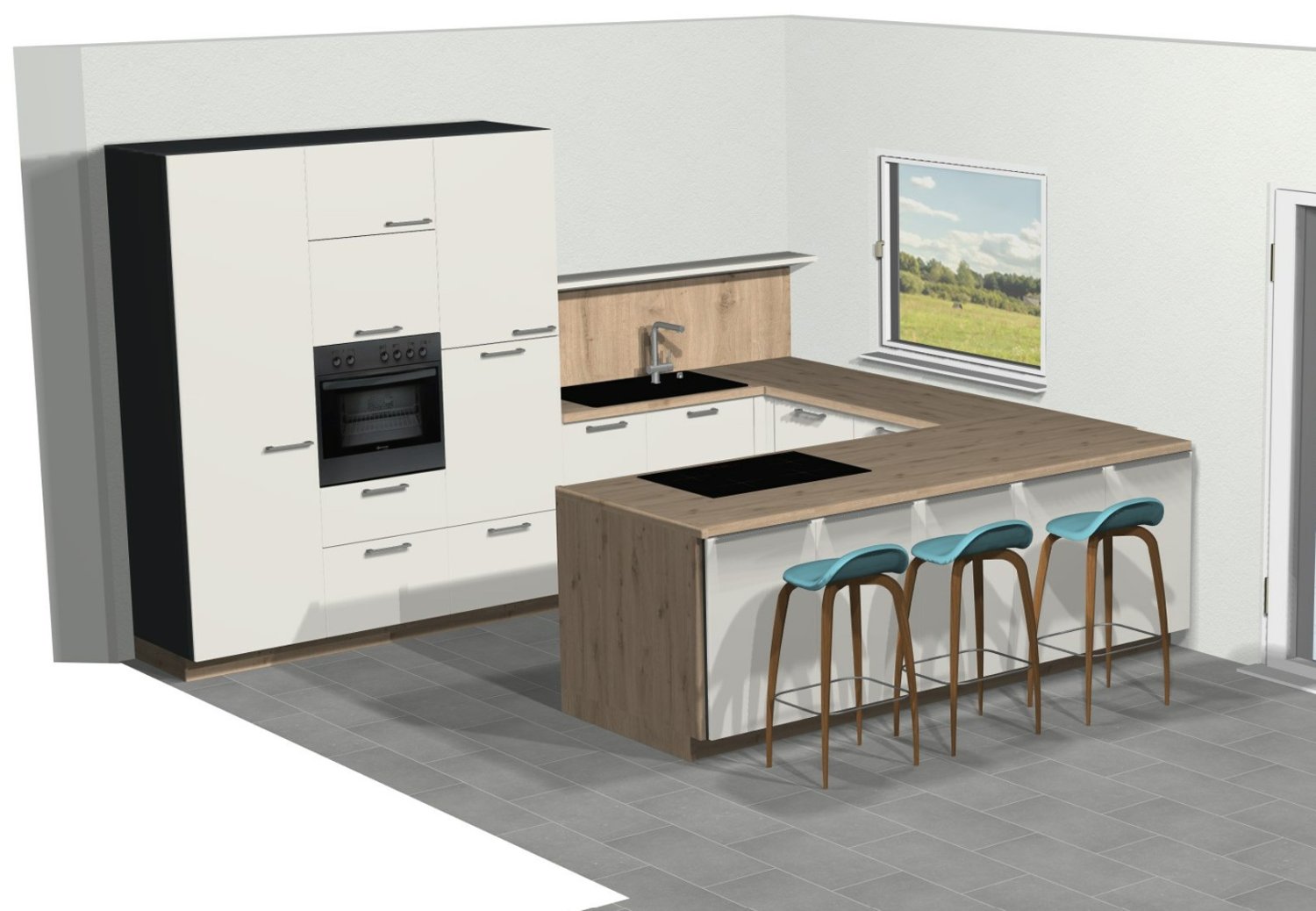 Sockel , APL, Wandverkleidung, Wange: Alles in Sommereiche hell Repro. Insbesondere beim Sockel bin ich mir da nicht sicher. Sollte man da lieber die Farben der Fronten aufgreifen, oder vielleicht sogar auch grau (wie die Fließen) oder titan (wie der Korpus)?