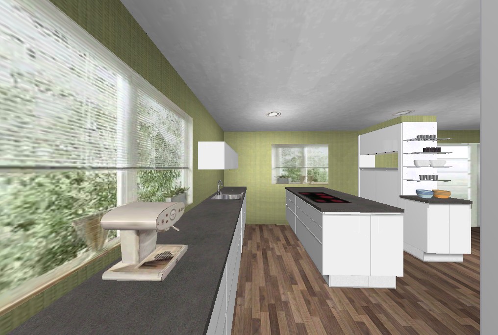 Einige habe ich bereits genannt (Querwrasen, Entfernung zu Waschbecken und Vorbereitungsbereich sowie GSP)- ein anderer ist: Vor allen Fenstern haben wir maßgefertigte Plissiers. In jedem Raum ein anderer Typ - gewählt nach Farbe, Transparenzgrad, Muster, Wärmereflektion etc. An dieser Stelle der Küche verhindert das Pl die ungehinderte Sicht des höher gelegenen Nachbarn vis a vis in unseren Essbereich (insbesondere Abends) sowie im Sommer den ungehinderten Sonneneinstrahl. Das Kochfeld muss also entweder auf die Insel (vermutlich die schlechteste aller Optionen - dafür wollte der KFB uns aber einen Vorschlag machen) - oder eben auf den Teil der Wand planlinks, der der gegenwärtigen Position benachbart ist.
