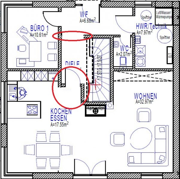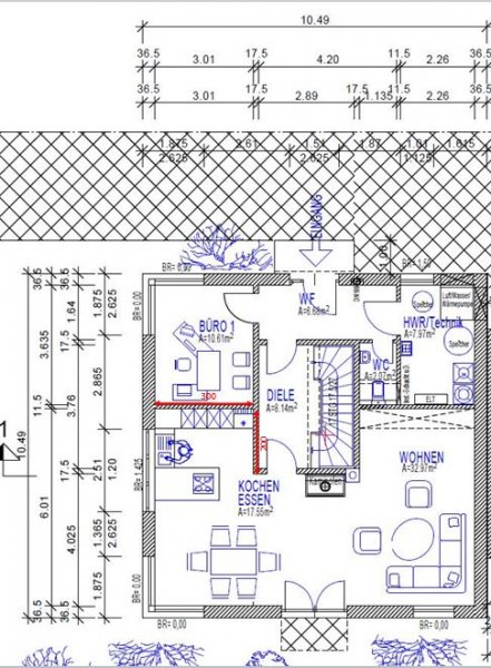 Wand zur Diele Verkürzen und die Eingangstür zur Diele streichen: Somit würden die hinteren Hochschranke in die Wand eingekoffert werden und ich hätte mehr Platz um die AP zu verlängern.