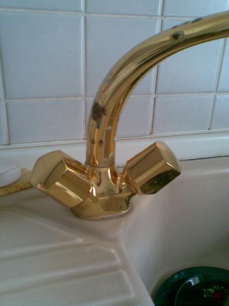 Ich bin für eine Kundin auf der Suche nach einer goldfarbig-glänzenden 2-Griff Spülenarmatur (Druck). Diese Armatur hat auf der Spüle aufliegend einen ovalen Sockel mit den ca-Massen 70x50mm. Die Küche ist lt. Aussage ca. 15 Jahre alt, so neu ist dann auch die Armatur. Rechnung liegt leider auch keine mehr vor.
