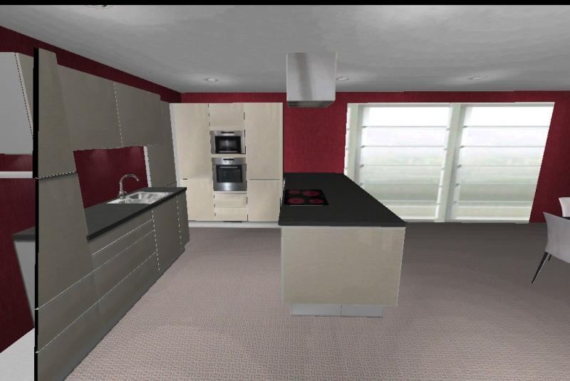 Was die Planung von Kerstin betrifft: Sie sieht zwar super aus, aber uns wär einfach etwas mehr Platz zwischen Insel und Esstisch recht, weil da der Durchgang zur Balkontür ist.