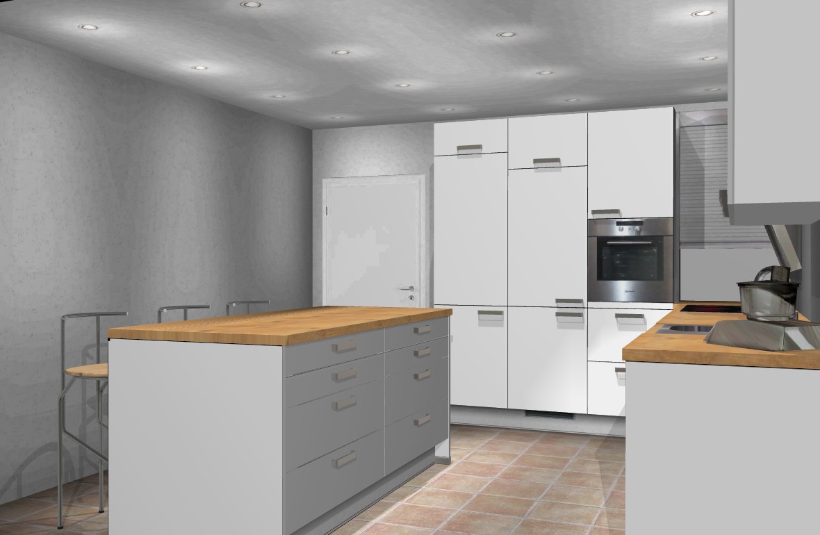 Ich habe jetzt auch mal die Küche im Alno -Planer geplant. Allerdings weiß ich leider nicht wie breit eure Tür ist und wie die genaue Lage der Tür ist. Könntest du diese Maße bitte noch nachreichen? Und vermutlich muss auch noch die Position der Lichtschalter miteingeplant werden.