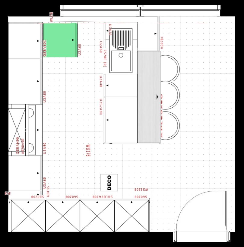 GSP habe ich nun unter dem hochgebautem Backofen geplant. Hat den Vorteil, dass dadurch vor dem Eck noch ein weitererer US möglich ist mit weiterer Stellfläche für Küchenmaschine, Kaffeemaschine, Obstschale etc. Und dennoch wird durch den geöffneten GSP kein Schrank blockiert. Man kann sehr bequem Geschirr einräumen wenn man vor der Spüle steht und kann dennoch noch den MUPL öffnen.