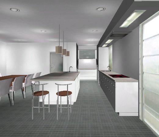 wir sind derzeit mit unserem architekten an einer neuen version ... die ähnlich aussieht wie im beigefügten foto. also die küchenzeile ca. so mit spüle, und das kochfeld auf der insel, welche aber schon anders werden soll wie auf dem bild.