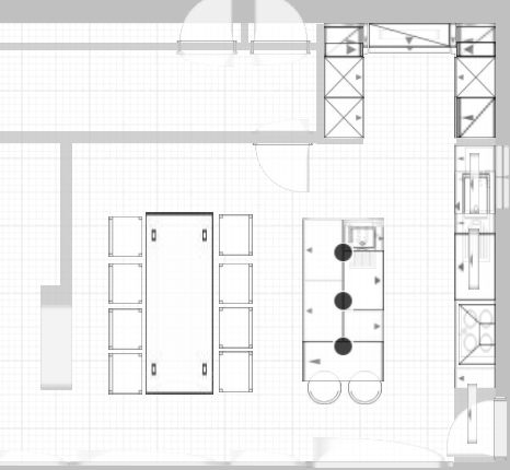 Die Küchenzeile geht um's Eck, wobei im Eck noch eine kleine Speis integriert ist. Und in die Mitte soll eine Insel. Das Layout ist somit eigentlich vorgegeben.