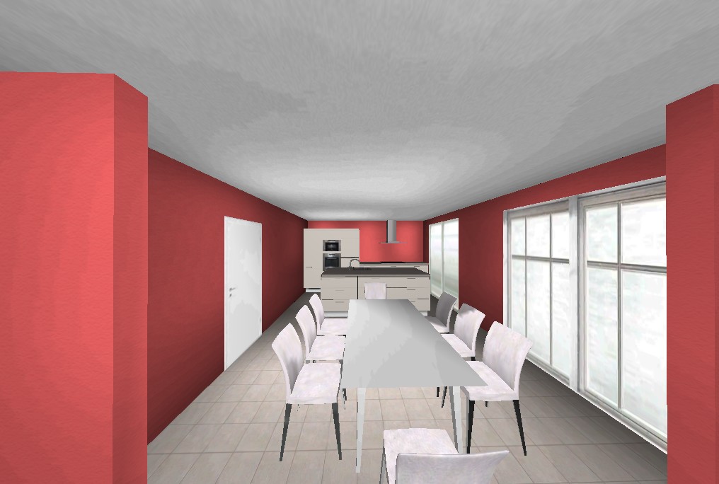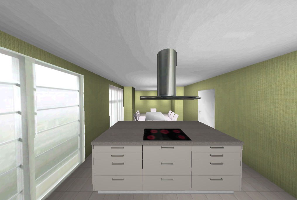 Wir planen eine offene Küche mit großem separatem Tisch zum Essen.