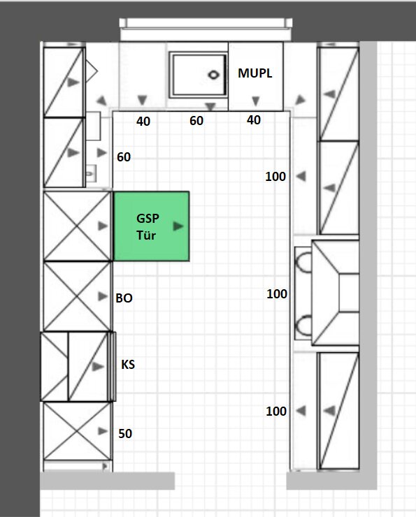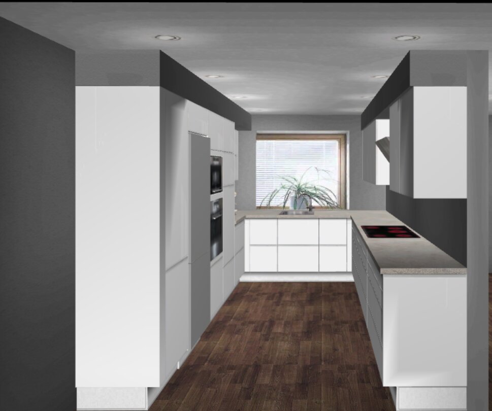 Wir wollen die Küche in unserem Endreihenhaus erneuern. Zukünftig soll sie als U gebaut werden.