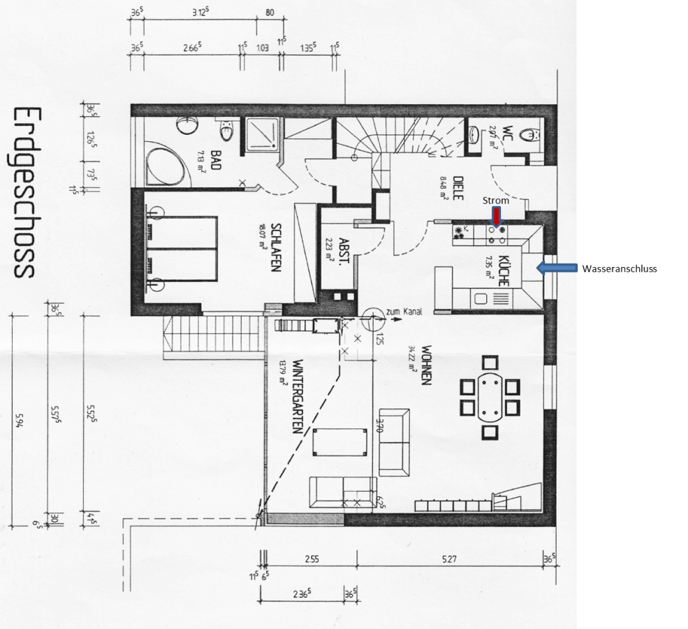 Habe den Grundriss mit Abmessungen hochgeladen und den Strom bzw. Wasseranschluss eingetragen ...Höhe Fenster reiche ich nach ...