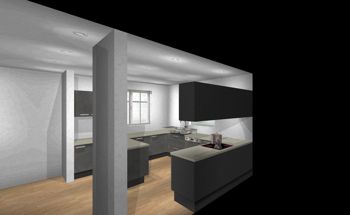 So, jetzt müsste alles dabei sein. Die Maße im "Küchenplaner" sind gemessene, die weichen etwas vom EG-Werkplan ab. Grundsätzlich passt der Plan aber - bis auf die Lage der Sanitäranschlüsse, die sind 20cm weiter rechts derzeit, können aber zur Not noch geändert werden.