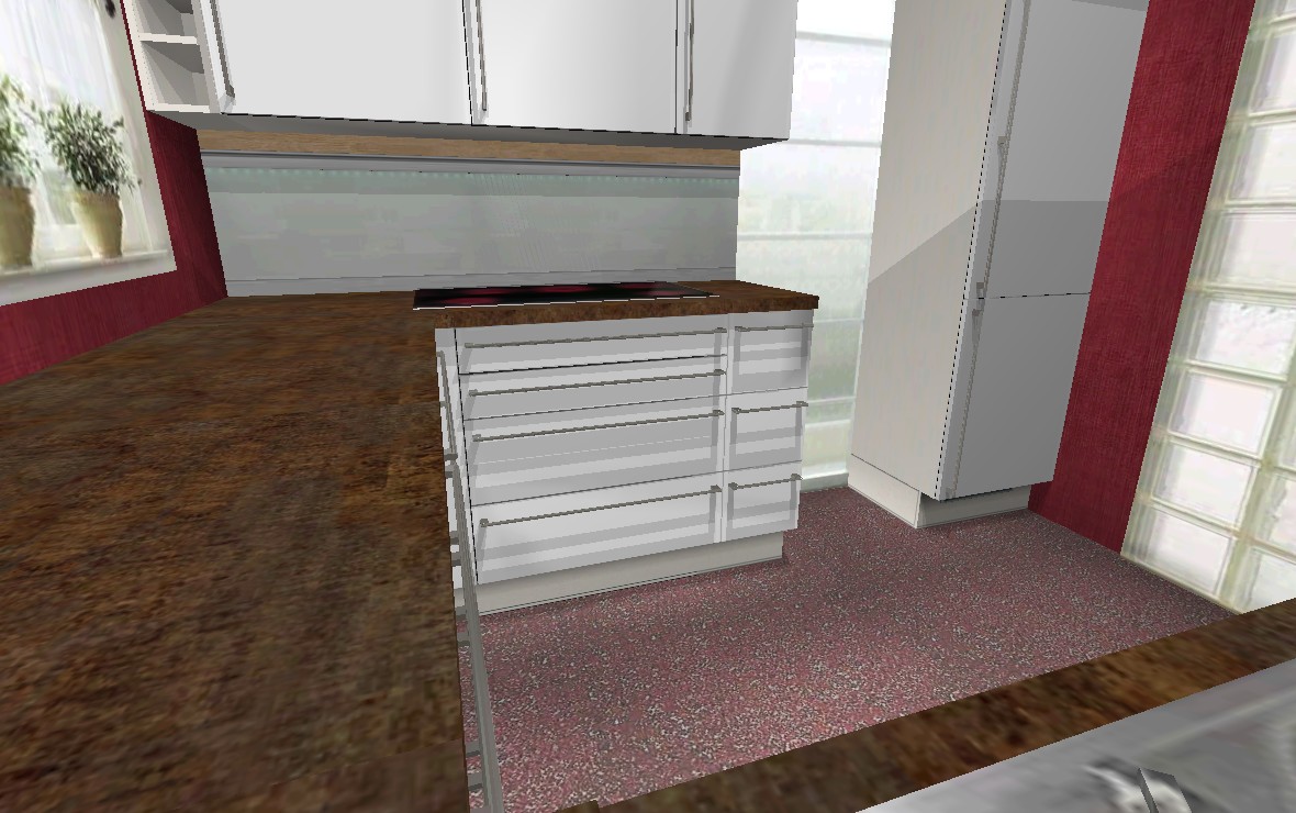 danke, dass Du Dir auch noch so viele Gedanken gemacht hast und dabei meinen Wunsch:kiss: nach einer Tür in den Flur berücksichtigt hast . Die möchte ich wirklich nicht aufgeben, auch wenn die Arbeitsfläche sonst sicher optimaler wäre. Witzig ist, dass deine 2. Darstellung mit der Halbinsel ein wenig unserer jetzigen Küche entspricht. wir haben zwar keine Arbeitsplatte vor dem Fenster, aber eine Tisch, dort wo jetzt die Halbinsel geplant ist seitlich an den Schrank gebastelt. Ich weiß nicht, ob ich das wieder möchte, denn man muss ständig darum herum laufen. Von einer moderenen Insellösung habe ich mich bei der kleinen Reihenhausküche schon verabschiedet.