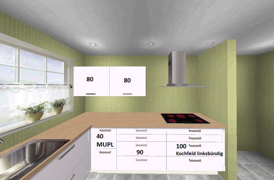 Allerdings wissen wir nicht, wo dan das 80er Induktionsfeld hin soll. Direkt neben dem Spülbecken finden wir es zu eng und links neben dem Fenster passt kein Abzughaube mehr darüber, weil dort bei 120 cm das Fenster anfängt :-(